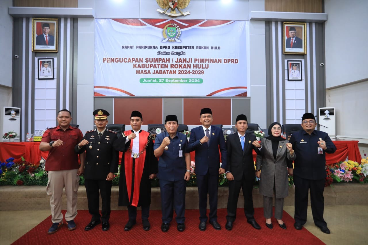 Dalam hal ini, Bupati Rokan Hulu (Rohul), H Sukiman turut menghadiri prosesi pelantikan sekaligus pengambilan sumpah terhadap 45 anggota Dewan Perwakilan Rakyat Daerah (DPRD) Kabupaten Rokan Hulu tersebut.