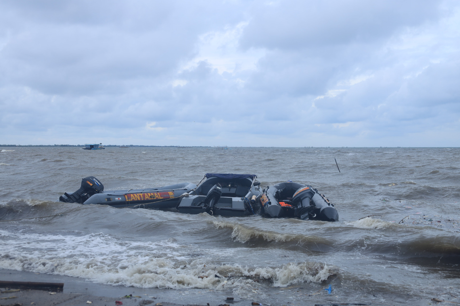 Detakindonesianews.com, TNI AL-Dispenlantamal3. Komandan Pangkalan Utama TNI Angkatan Laut (Danlantamal) III Jakarta Brigjen TNI (Mar) Harry Indarto, S.E., M.M. terpaksa menghentikan sementara pelaksanaan pembongkaran pagar laut di dua titik, yaitu di perairan Tanjung Pasir dan perairan Kronjo akibat cuaca buruk, bertempat di Posko Pembongkaran Pagar Laut, Tanjung Pasir, Tangerang, Selasa (28/01/2025).