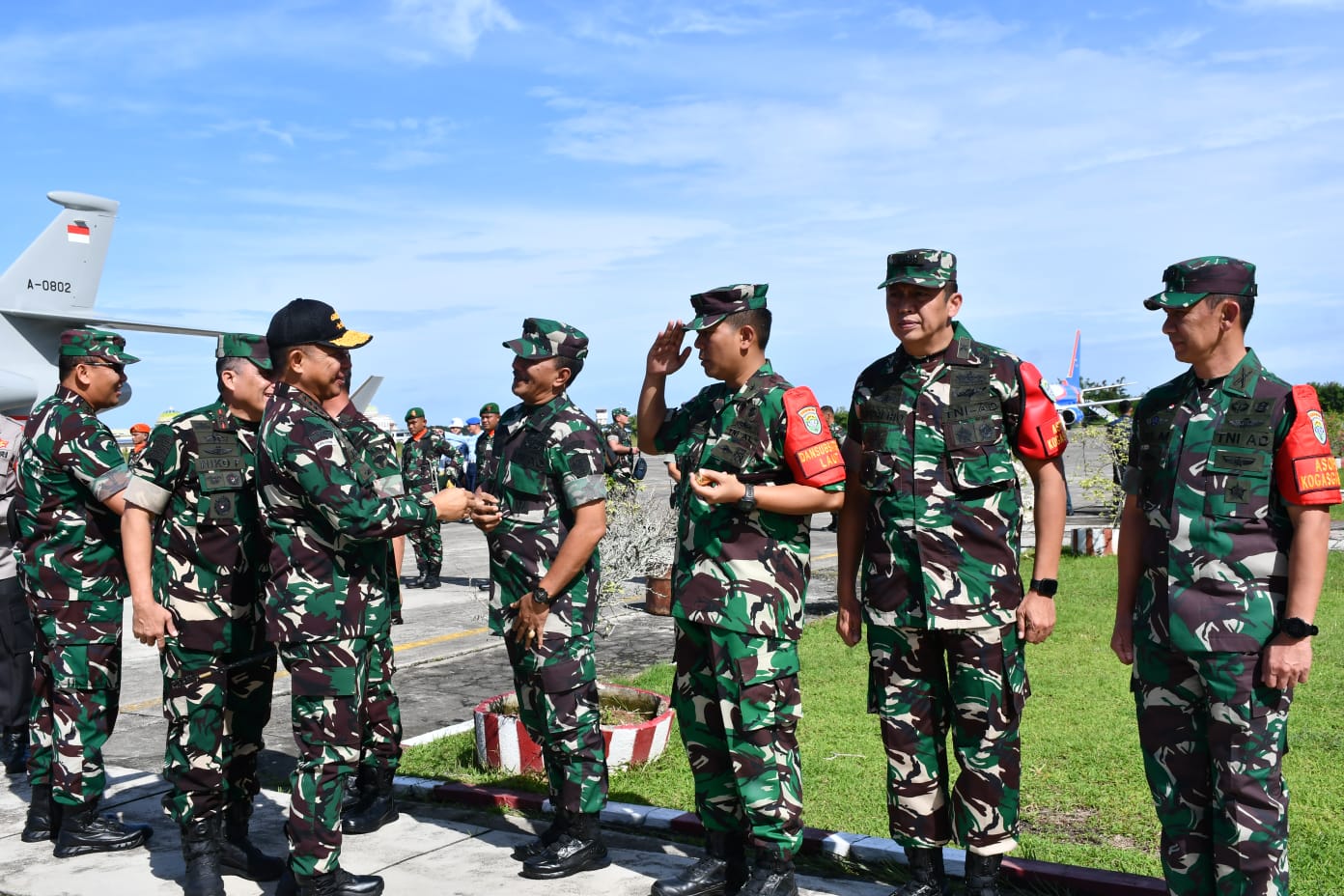 Detakindonesianews.com, TNI AL Sabang,- Komandan Lanal Sabang (Danlanal Sabang) Kolonel Laut (P) Gita Muharam, M.Sc., beserta Unsur Forkopimda Provinsi Aceh sambut kedatangan Panglima TNI Jenderal TNI Agus Subiyanto dalam rangka mendampingi Kunker Presiden RI Ir. H. Joko Widodo beserta rombongan di Provinsi Aceh untuk meresmikan IJD (Inpres Jalan Daerah) dan Peresmian Gedung Pusat Aneuk Muda Aceh Unggul Hebat Kabupaten Aceh Besar, dengan menggunakan pesawat BBJ2/A-001, bertempat di Bandar Udara Internasional Sultan Iskandar Muda, Kecamatan Blang Bintang, Kabupaten Aceh Besar, Selasa (15/10/2024).