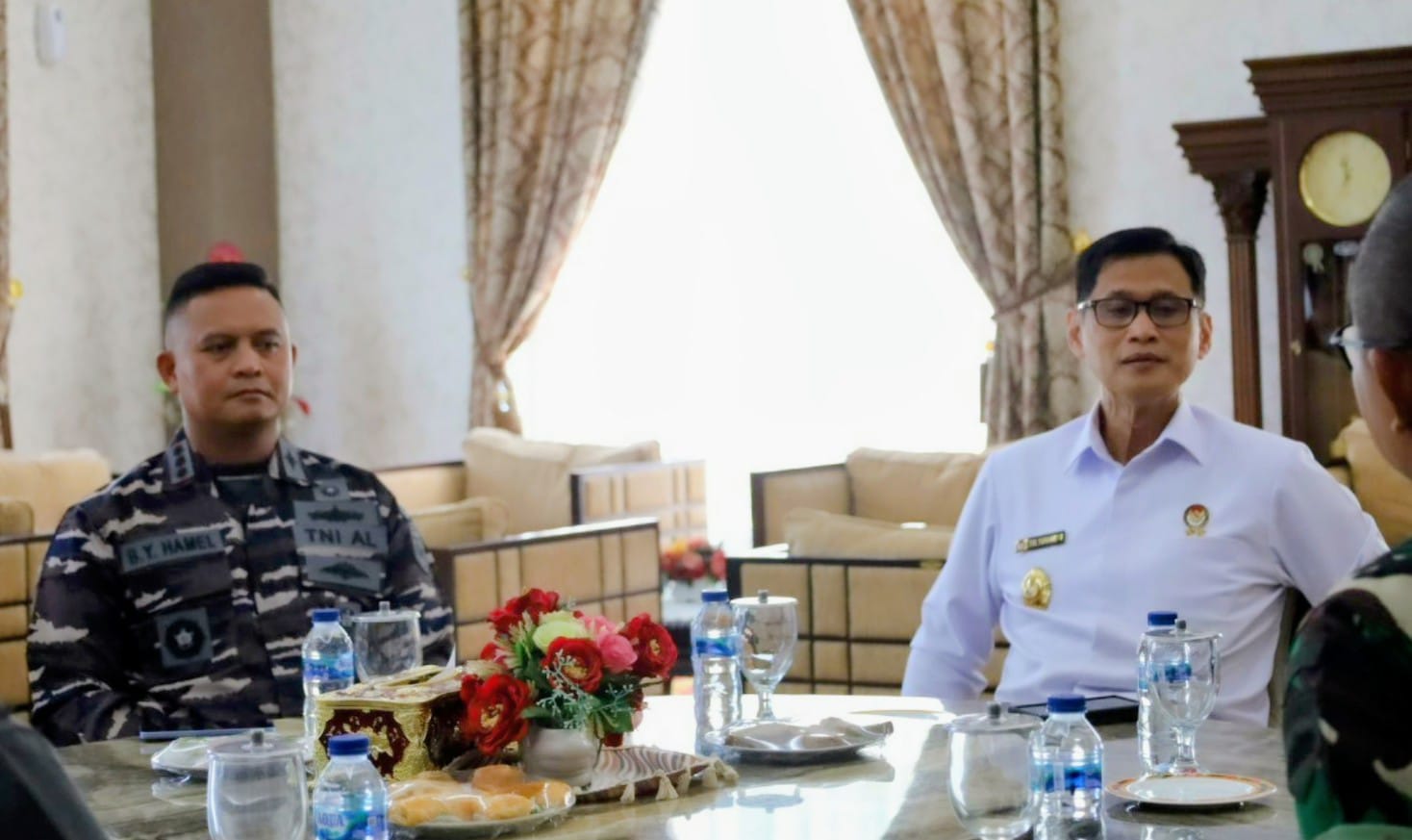 Detakindonesianews.com, TNI AL Dumai,- Komandan Pangkalan TNI AL Dumai Kolonel Laut (P) Boy Yopi Hamel, sambut kedatangan rombongan Sekretaris Jenderal Dewan Ketahanan Nasional RI yang dipimpin oleh Deputi Sistem Nasional Setjen Wantannas RI Mayjen TNI Dr. M. Tri Yuniarto, S.AP., M.Si., bertempat di Gedung VIP Lancang Kuning, Bandara Sultan Syarif Kasim ll Pekanbaru, Riau, Selasa (24/9/2024).