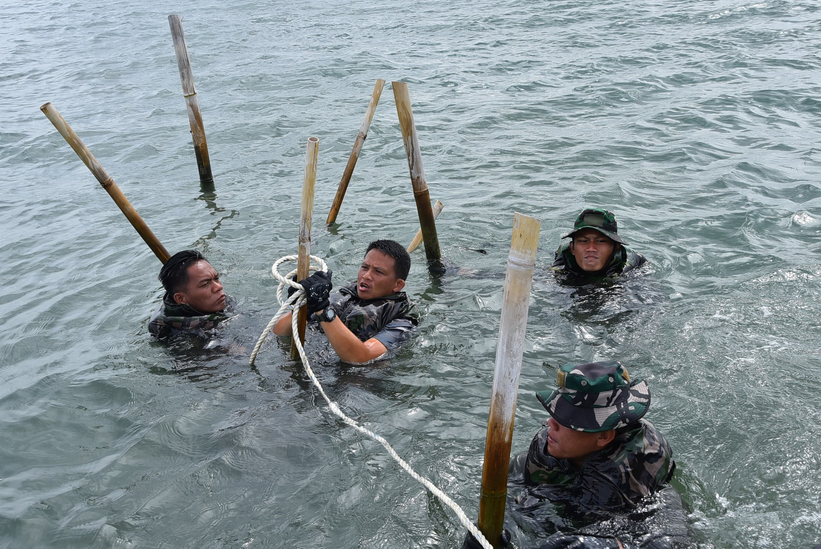 Selanjutnya Danlantamal III Jakarta menjelaskan “Unsur dari TNI Angkatan Laut yang digunakan dalam pembongkaran pagar laut, antara lain 4 KAL/Patkamla, 6 sea rider, 13 perahu karet, 2 RBB dan 2 RHIB, serta perahu milik para nelayan yang sangat antusias ikut membantu pembongkaran pagar laut tersebut sejak hari pertama sampai saat ini. Kendala dan kesulitan yang dihadapi masih sama, yaitu kondisi cuaca yang mendung dan disertai hujan, angin yang kencang, arus air yang kuat, dan gelombang yang cukup tinggi, serta pagar bambu yang tertancap di dasar laut mencapai kedalaman 1,5 s.d. 2,5 meter. Di samping itu kedalaman air laut yang dangkal sekitar 1 meter menjadikan perahu karet mengalami kandas sehingga menyulitkan tim yang bertugas mengikat batang bambu karena menghambat pergerakannya. Jarak bambu yang semakin rapat dengan ukuran yang besar dan tertancap dalam di dasar laut menjadikan sulit untuk dicabut. Kendala dan kesulitan yang dihadapi tidak menyurutkan semangat tim gabungan TNI Angkatan Laut, instansi maritim dan masyarakat nelayan untuk terus memaksimalkan serta mempercepat pembongkaran pagar laut guna membuka akses dan memudahkan nelayan mencari ikan ke laut”.