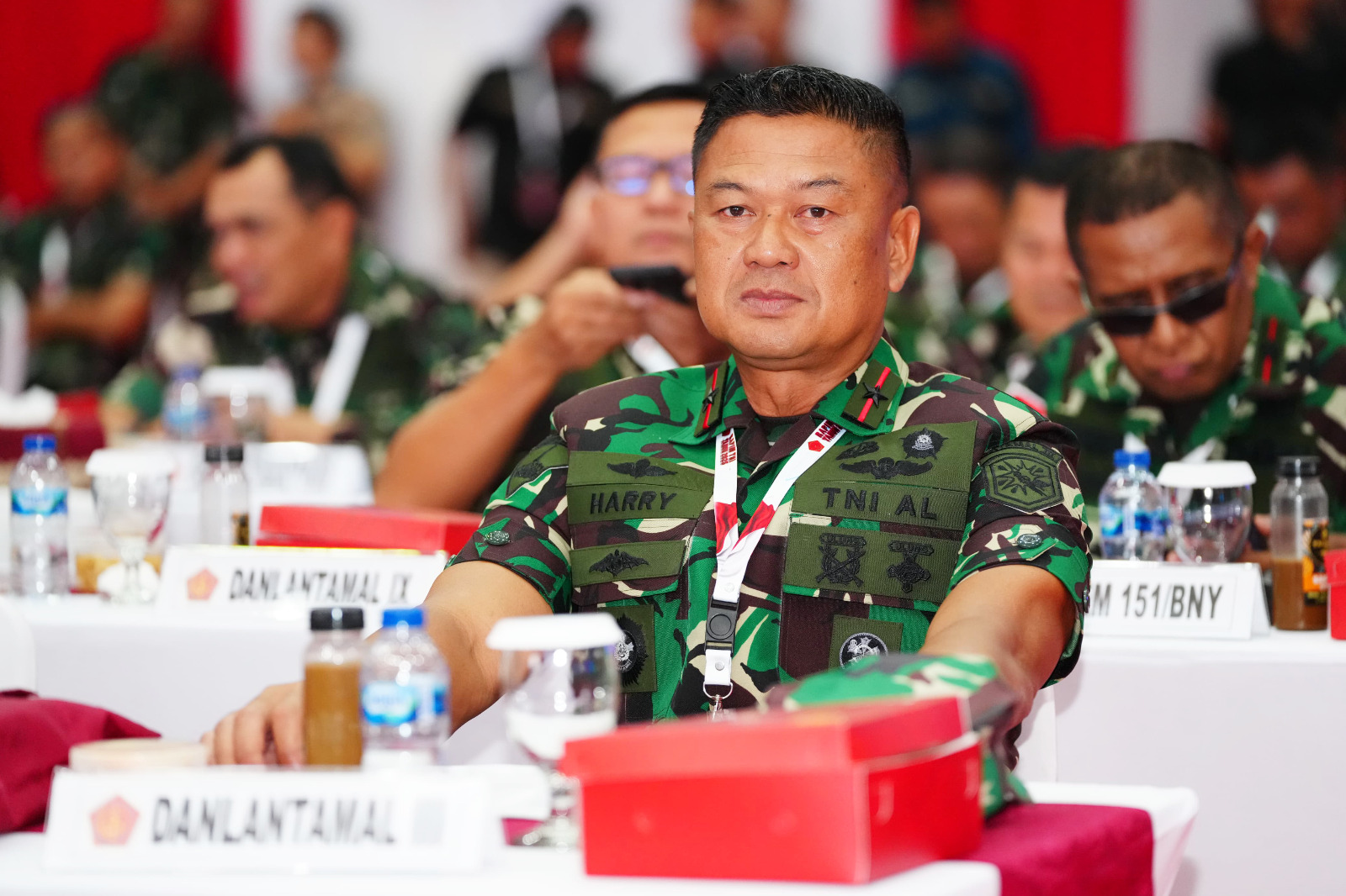 Turut mendampingi Panglima TNI dalam acara tersebut antara lain, Kepala Staf Angkatan Darat (Kasad) Jenderal TNI Maruli Simanjuntak, M.Sc., Kepala Staf Angkatan Laut (Kasal) Laksamana TNI Dr. Muhammad Ali, S.E., M.M., M.Tr.Opsla., dan Kepala Staf Angkatan Udara (Kasau) Marsekal TNI Tonny Harjono, S.E., M.P.P., CSFA.