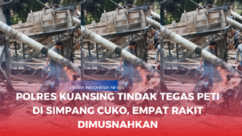 Polres Kuansing Tindak Tegas PETI di Simpang Cuko, Empat Rakit Dimusnahkan