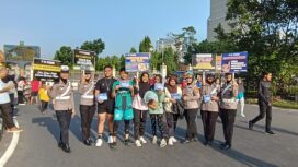 Tim Cooling System Ditlantas Polda Riau Gelar Kampanye Keselamatan Berlalu Lintas dan Himbaun Pilkada Riau di Area CFD Pekanbaru