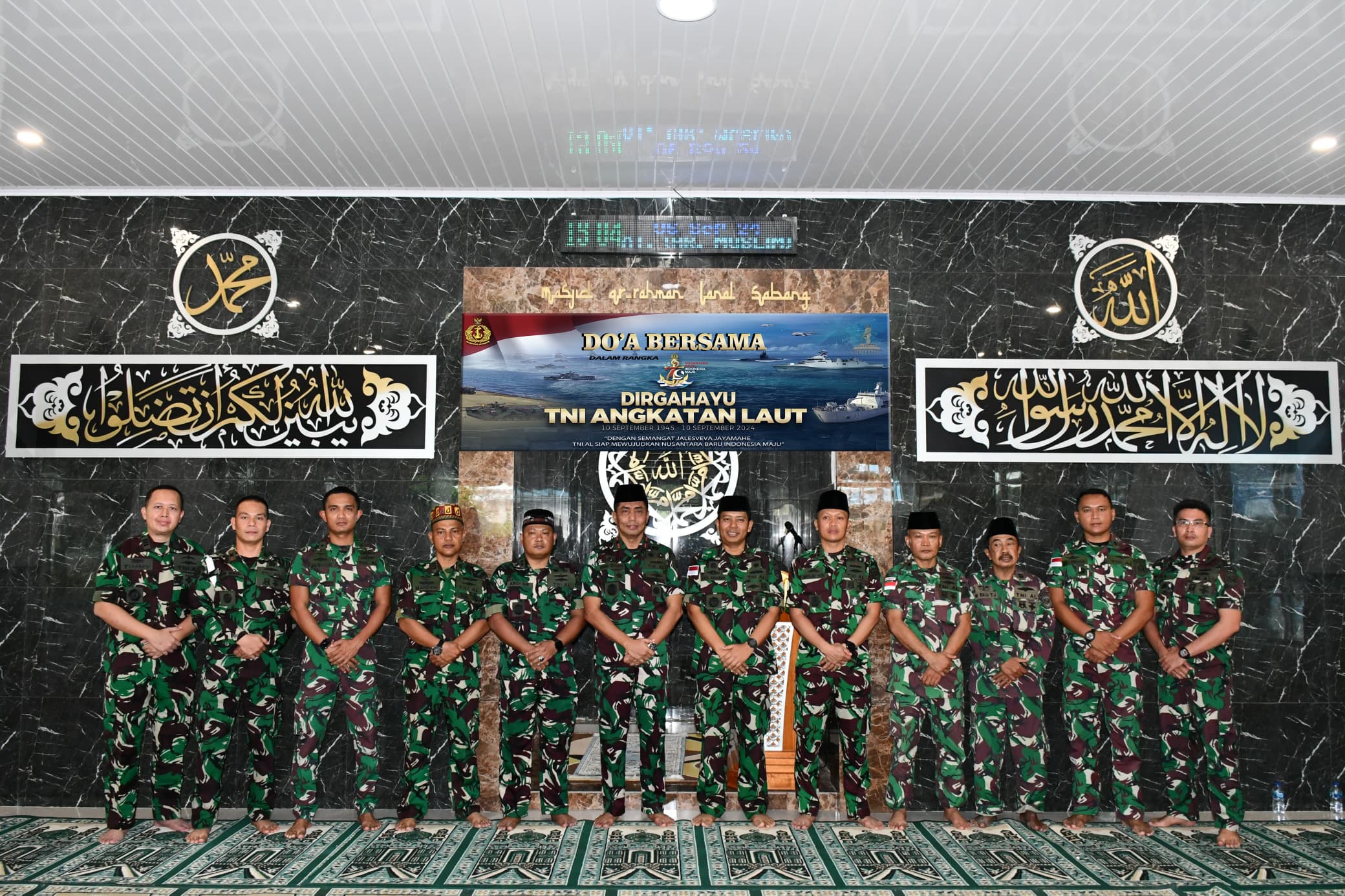 DetakIndonesiaNews.com, TNI AL Sabang,- Menjelang Peringatan HUT Ke-79, Komandan Lanal Sabang (Danlanal Sabang) Kolonel Laut (P) Gita Muharam, M.Sc., Danguskamla Koarmada I, beserta Personel TNI Angkatan Laut yang ada di Kota Sabang melaksanakan Do’a Bersama dengan tema” Dengan Semangat Jalesveva Jayamahe TNI AL Siap Mewujudkan Nusantara Baru, Indonesia Maju,” bertempat di Masjid Ar-Rahman Mako Lanal Sabang, Jalan Yos Sudarso, Kuta Ateuh, Kecamatan Sukakarya, Kota Sabang, Jum’at (06/9/2024).