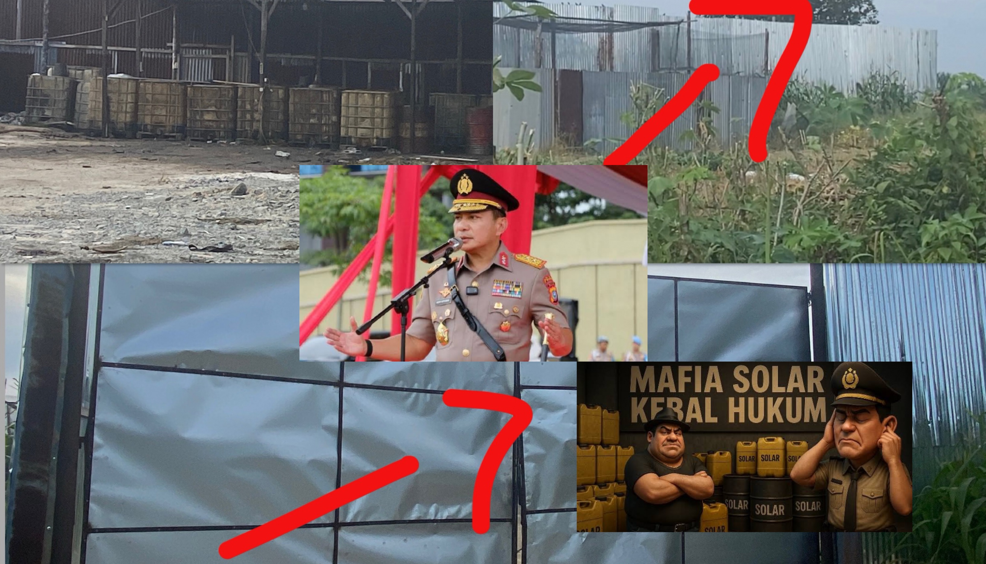 Dari pantauan dan informasi warga, gudang tersebut tampak dipenuhi dengan berbagai peralatan yang digunakan untuk kegiatan ilegal. Di dalamnya terdapat baby tank, jeriken, drum-drum berisi solar, serta selang-selang besar yang diduga digunakan untuk memindahkan BBM. Tak hanya itu, beberapa mobil tangki berwarna biru putih juga terlihat terparkir di dalam area gudang, diduga kuat sebagai armada distribusi BBM ilegal.