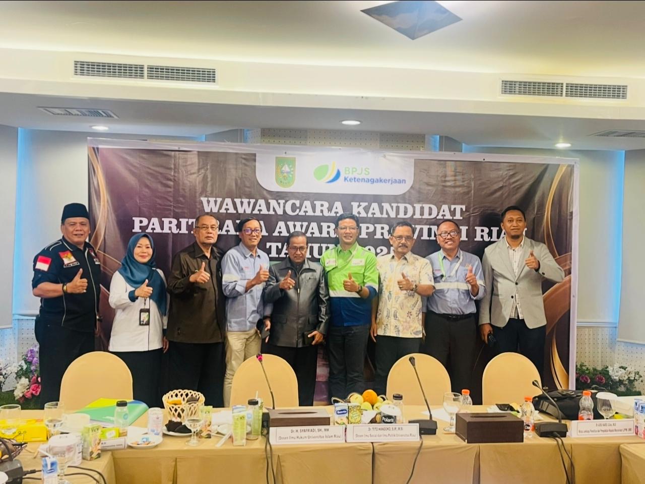 Pekanbaru, Detak Indonesia News – 28 Juli 2025 Tim 9 Paritrana Award 2025, yang terdiri dari unsur pemerintah, lembaga ketenagakerjaan, asosiasi pengusaha, serikat pekerja, dan akademisi, saat ini tengah melaksanakan tahap wawancara terhadap kandidat penerima penghargaan Paritrana Award 2025. Penilaian difokuskan pada implementasi program BPJS Ketenagakerjaan di sektor usaha menengah dan Usaha Mikro, Kecil, dan Menengah (UMKM) di Provinsi Riau.