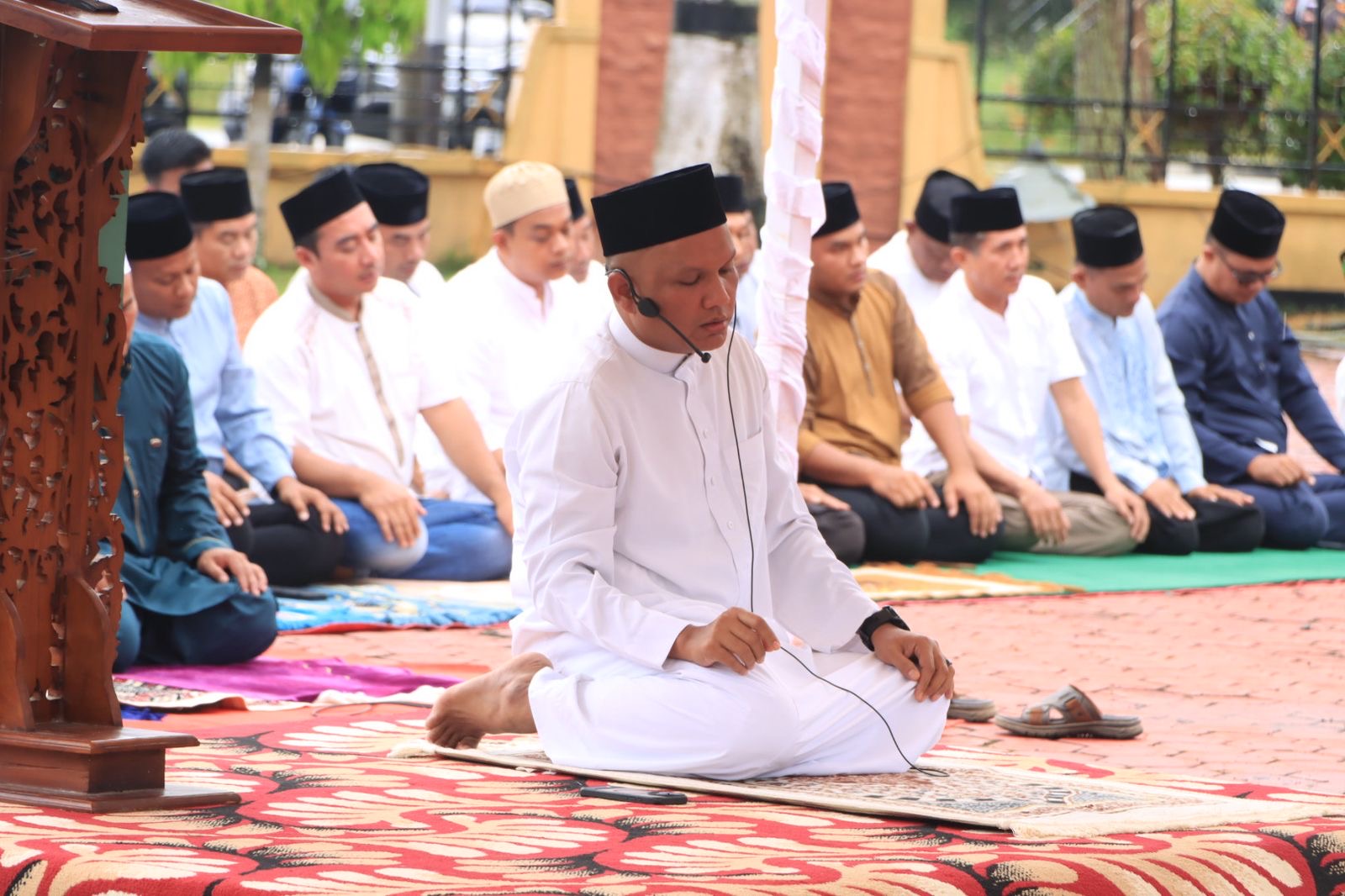 Sholat Ied kali ini dipimpin langsung oleh Kapolres Siak, AKBP Eka Ariandy Putra, S.H., S.I.K., M.Si, yang bertindak sebagai imam sholat. Dengan suara lantang dan merdu, Kapolres memimpin sholat dengan penuh kekhusyukan, diikuti oleh jamaah yang khidmat dalam ibadah mereka. Seusai sholat, Ustad Ali Murtadho, S.Ag., Kepala KUA Kecamatan Dayun menyampaikan khutbah Idul Fitri yang menekankan pentingnya persaudaraan, ketakwaan, serta semangat kebersamaan dalam menjaga keamanan dan ketertiban di Kabupaten Siak.