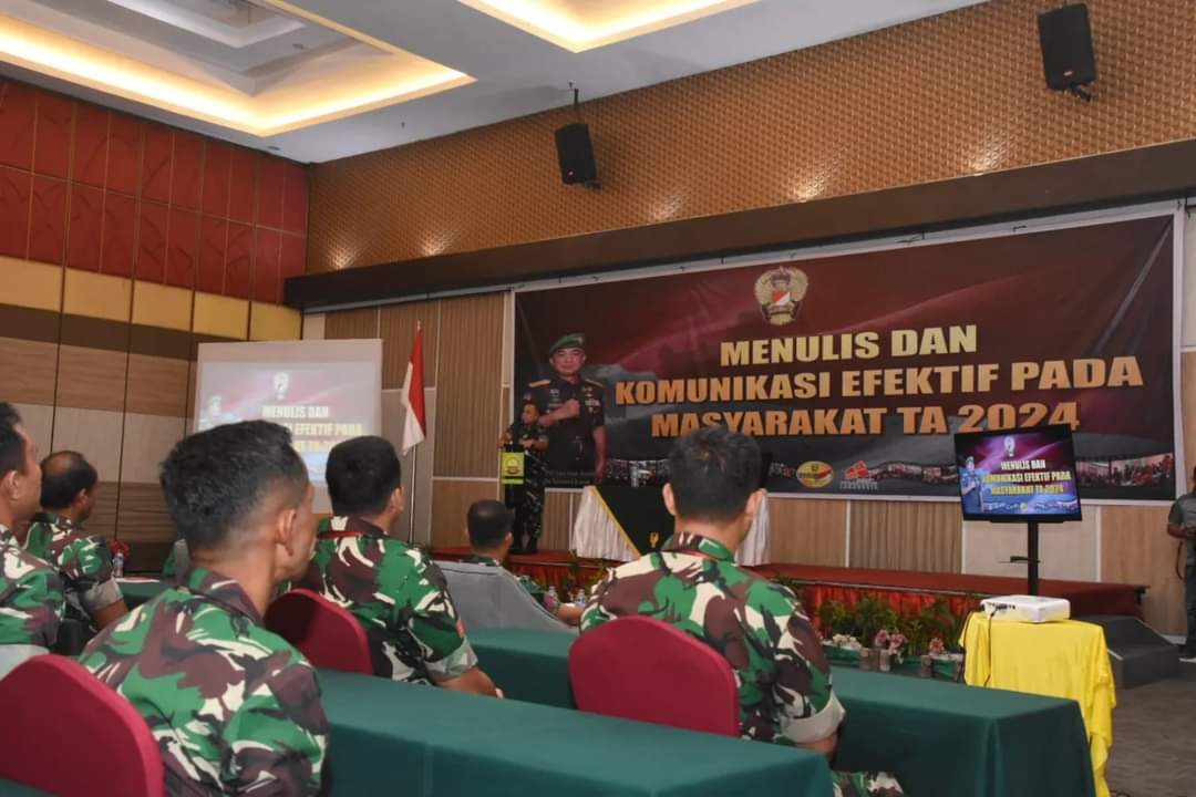 Pekanbaru, DetakindonesiaNews – Staf Teritorial Angkatan Darat (Sterad) diwakili oleh Kolonel Inf Tri Aji Sartono M.Han menutup pelatihan Menulis dan Komunikasi Efektif pada masyarakat TA.2024 untuk satuan jajaran Kodam I\BB terpusat yang dilaksanakan di Gedung Ballroom Grand Suka hotel yang berlokasi di Jl. Soekarno Hatta Kota Pekanbaru Provinsi Riau.