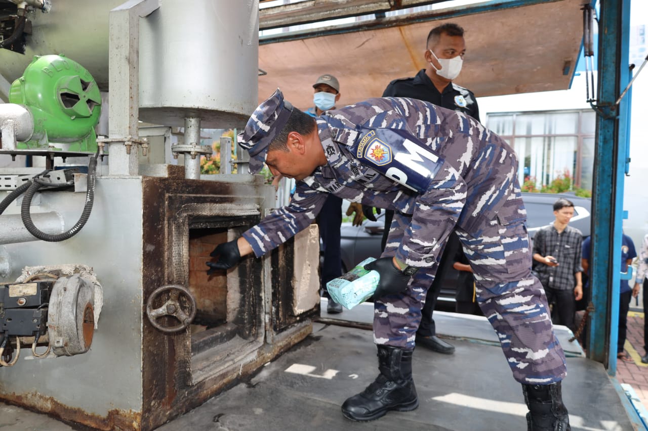 Detakindonesianews.com, TNI AL Tanuuny Balai,- Danlanal TBA Letkol Laut (P) Widi Dwi Nugraha, S.E., M.Tr. Opsla., diwakilkan Paur Lidkrim Denpomal Lanal TBA Letda (PM) Muswar menghadiri pemusnahan barang bukti narkotika jenis sabu seberat 21,4 kilogram hasil pengungkapan kasus beberapa waktu lalu, bertempat di Halaman Kantor BNNP Sumatra Utara Jl. William Iskandar Pasar V Barat I No. 1A Medan Estate, Jumat (13/09/2024).