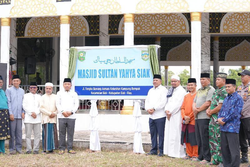 SIAK, Detakindonesianews – Bupati Siak Alfedri resmikan Masjid Sultan Yahya yang lokasinya berada di lingkungan Pondok Pesantren Darul Hadist Sultan Yahya Siak jalan Sapta Taruna Kelurahan Kampung Rempak, Kecamatan Siak.