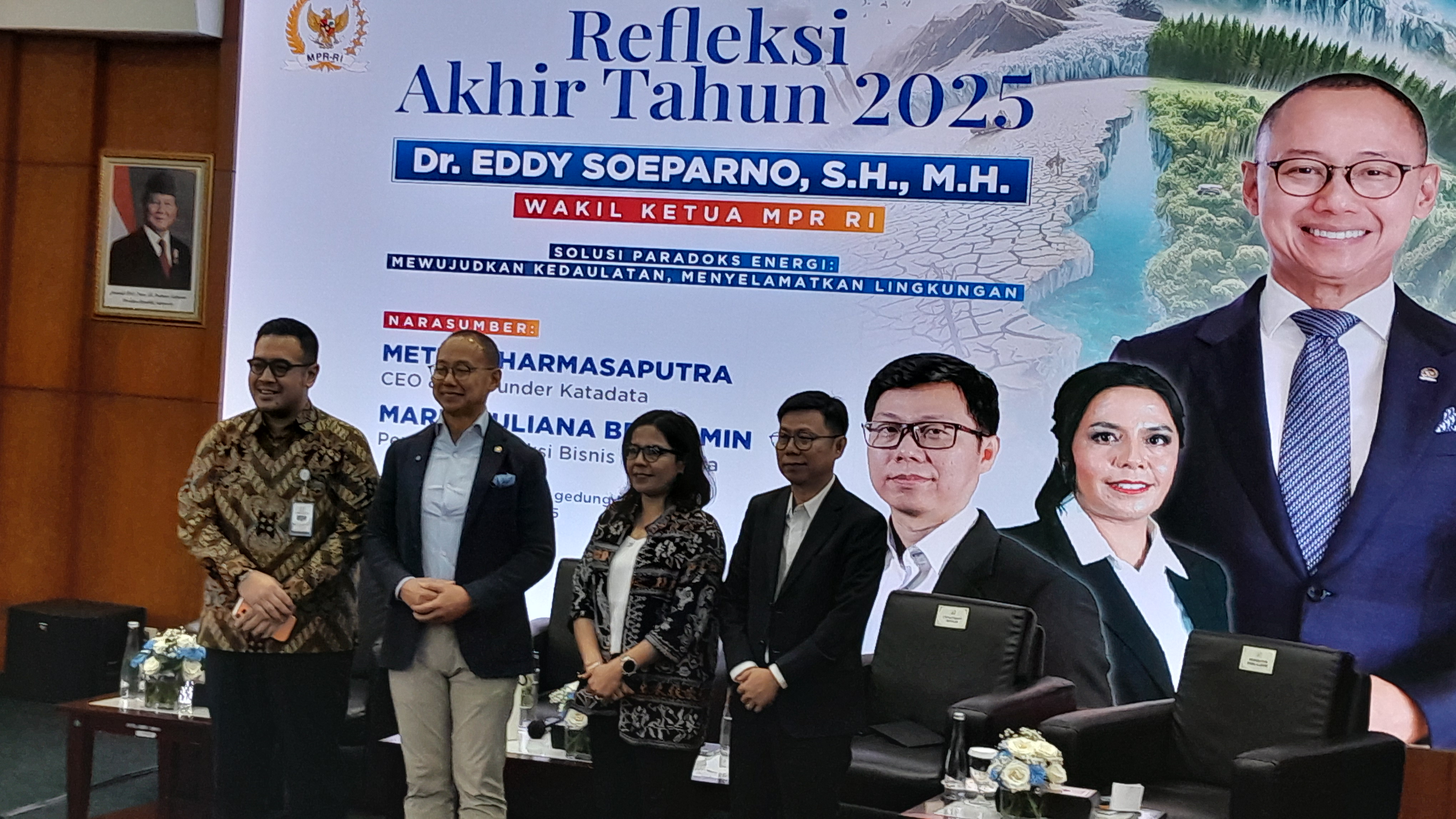 Detakindonesianews.com, Jakarta 29 Desember 2025 — Isu paradoks energi menjadi sorotan utama dalam agenda Refleksi Akhir Tahun 2025 yang digelar di Gedung Delegasi MPR RI, Jakarta. Forum strategis ini menghadirkan Wakil Ketua MPR RI Eddy Soeparno, CEO Katadata Metta Darmaasaputra, serta Pemimpin Redaksi Bisnis Indonesia Maria Yuliana, untuk membedah solusi atas tantangan besar bangsa: memenuhi kebutuhan energi nasional sekaligus menyelamatkan lingkungan.