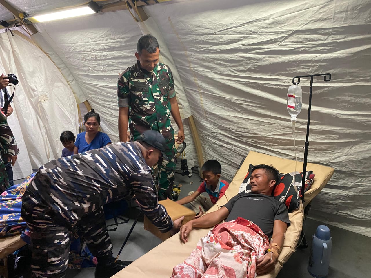 Peninjauan dan Pembagian Bansos Kepada Pasien DBD dan Malaria dilaksanakan di Rumah Sakit Lapangan Kodam I Bukit Barisan yang diawaki oleh Tim Kesehatan Gabungan TNI dan Dinas Kesehatan Nias Selatan di daerah KLB Pulau Tello.