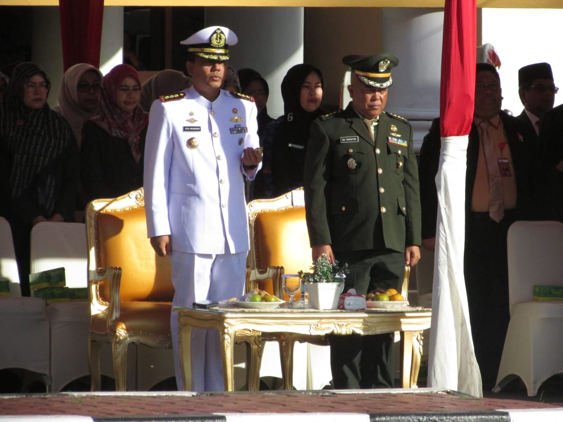 Pada kesempatan tersebut, Asisten III Sekda Aceh Dr. Iskandar AP., menjadi Inspektur Upacara sekaligus membacakan langsung Teks Pancasila.